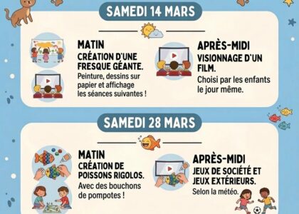 Le mois de mars arrive avec plein d’activités à découvrir ! Différents thèmes, des moments de partage et de bonne humeur vous attendent tout au